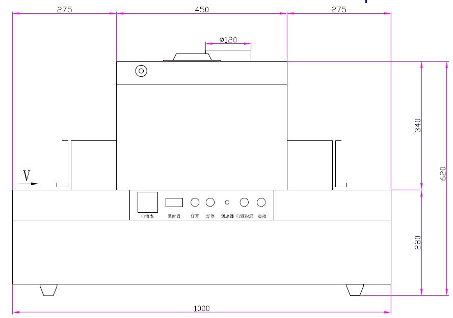 | 5.鈑金燈箱安裝插片反射器和光學(xué)平面玻璃 | 6.輸送材料:不銹鋼網(wǎng)帶 |